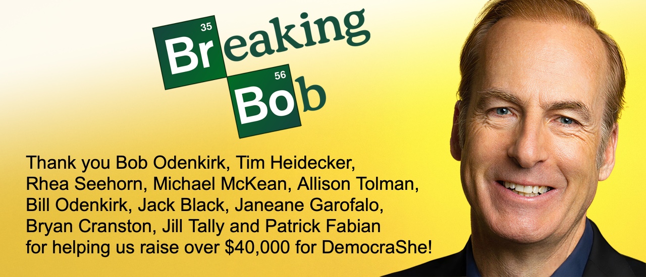 Thank you Bob Odenkirk, Tim Heidecker, Rhea Seehorn, Michael McKean, Allison Tolman, Bill Odenkirk, Jack Black, Janeane Garofalo, Bryan Cranston, Jill Tally and Patrick Fabian for helping us raise over$40,000 for DemocraShe!